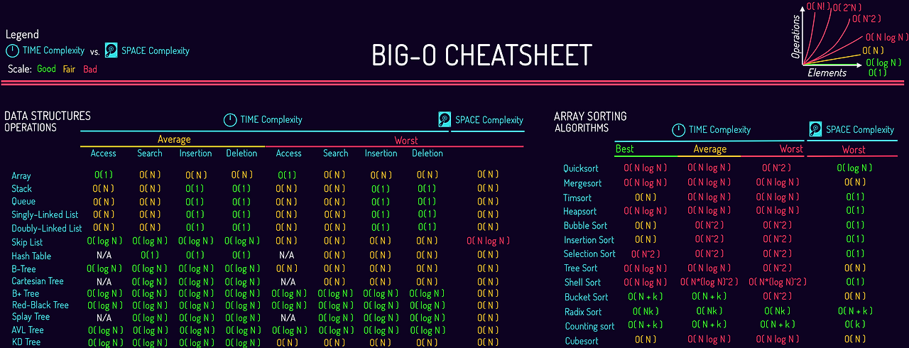 +) 어떤 고마운 분께서 보기좋게 data structure별로 Big-O cheatsheet을 만들어 두셨다.